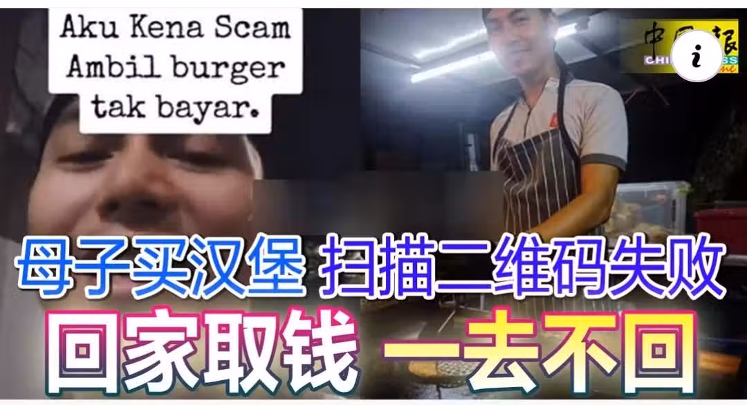 母子買漢堡 掃描二維碼失敗 回家取錢 一去不回