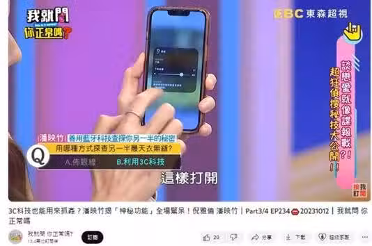 時代演變,3C科技越來越發達,市面上也有不少「抓姦神器」APP。而女星潘映竹則在節目透露,手機本身內建一個神祕功能,就能拿來抓猴,細說使用過程,震驚眾人。