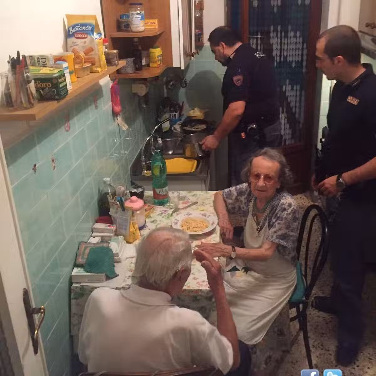而員警們所做的就是烹調了香噴噴的奶油起司義大利麵,邀請兩位老人家一起用餐,還當場跟他們對話,鼓舞他們獨自在家的苦悶情緒,看到這裡真的會覺得警察是人民保母呢!