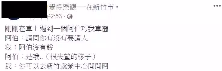聽到阿伯這樣說,網友馬上回沒有,但也提醒他,可以到就業中心詢問,至少都可以輔導就業等等,然而對方卻面有難色。