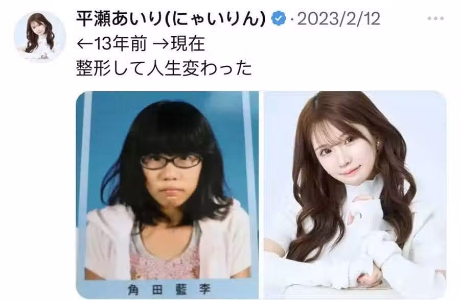 左邊是整形前平瀨あいり去參加攝影會,據她自己說當時的她還因為太醜成為了當場的話題…