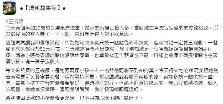 只買3碗白飯!單親2寶媽不敢夾肉「掏空皮夾湊錢」 自助餐老闆含淚「她不願領愛心餐」霸氣出手了!