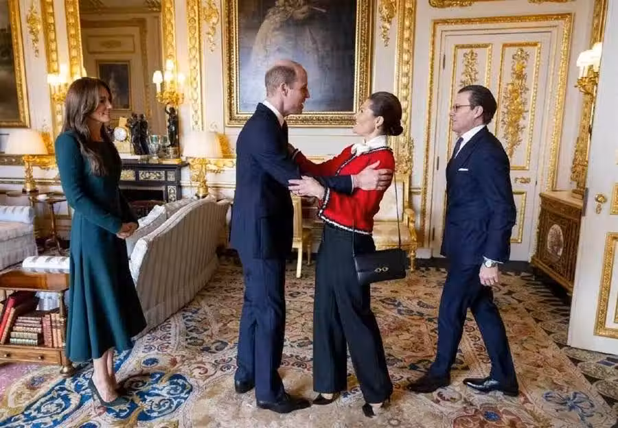 最後一天凱特王妃和威廉王子和瑞典的王儲夫婦相聚了,為了迎接瑞典王儲妃凱特和威廉王子都非常開心,據悉這也是他們五年後再次相聚,尤其是剛見面的時候威廉王子直接伸開雙臂去和瑞典王儲妃擁抱,就連身邊的凱特王妃都有點不好意思了。