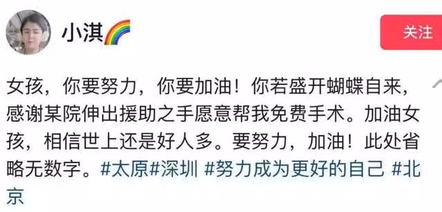 對於這些弱勢群體群體,我們應該用最大的善意去對待他們,用正常的眼光去看待他們,多一分善意,多一分幸福。