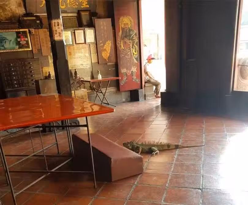 綠鬣蜥進天后宮「認真參拜半小時」!但結局並不是太溫馨