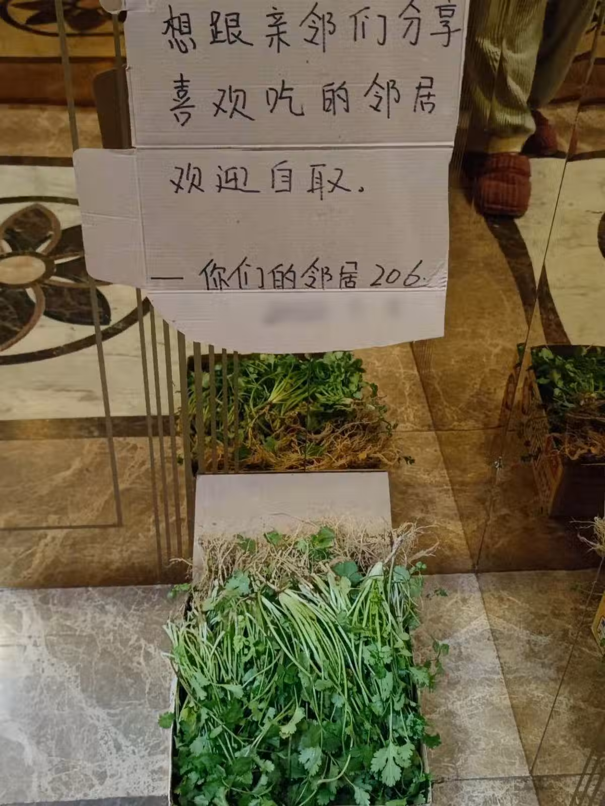老家自己種的!大方鄰居「電梯裡放新鮮香菜」和大家分享 網大讚是天使「他一看卻搖頭了」