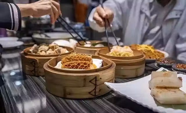 看到同學吃的那麼開心,我一直招呼著給他們加菜,好不容易坐下來想夾個自己喜歡吃的蝦餃,剛一下筷,就有人轉桌。 (這些菜都放在一個玻璃轉桌上,誰夾不到菜就轉動圓盤,讓菜轉到自己面前。)