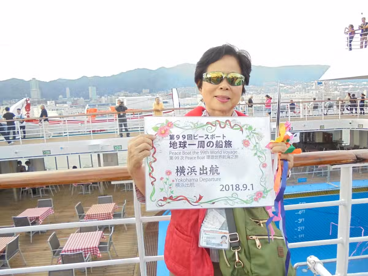 ▲2018年9月1日,林瓊姿從日本橫濱港搭乘「和平號」出發。