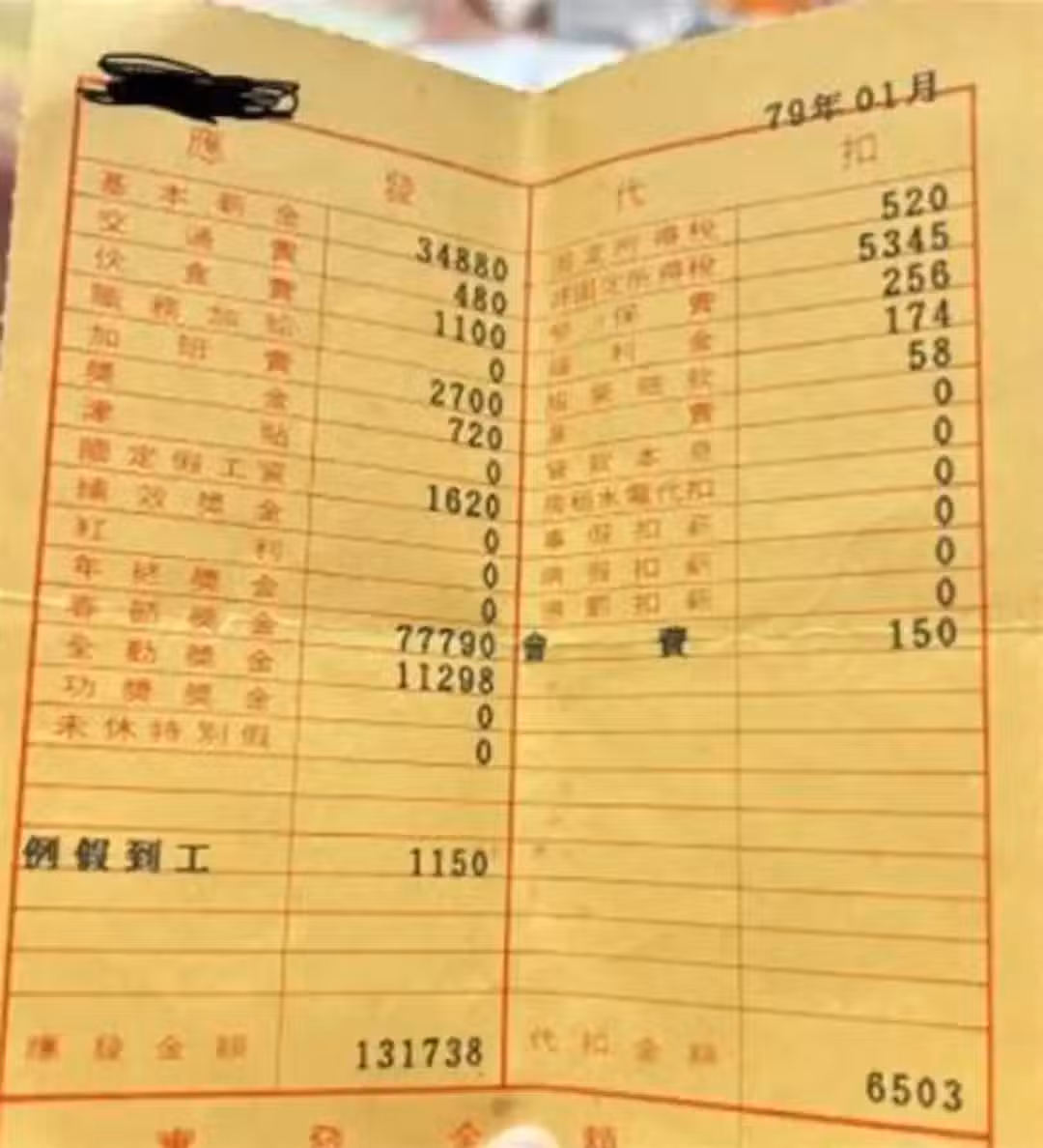 挖出阿公33年前薪資條!過年爽領12萬5「光獎金就近9萬」 網見「全勤獎金數字」羨慕哭:現在1千就該偷笑
