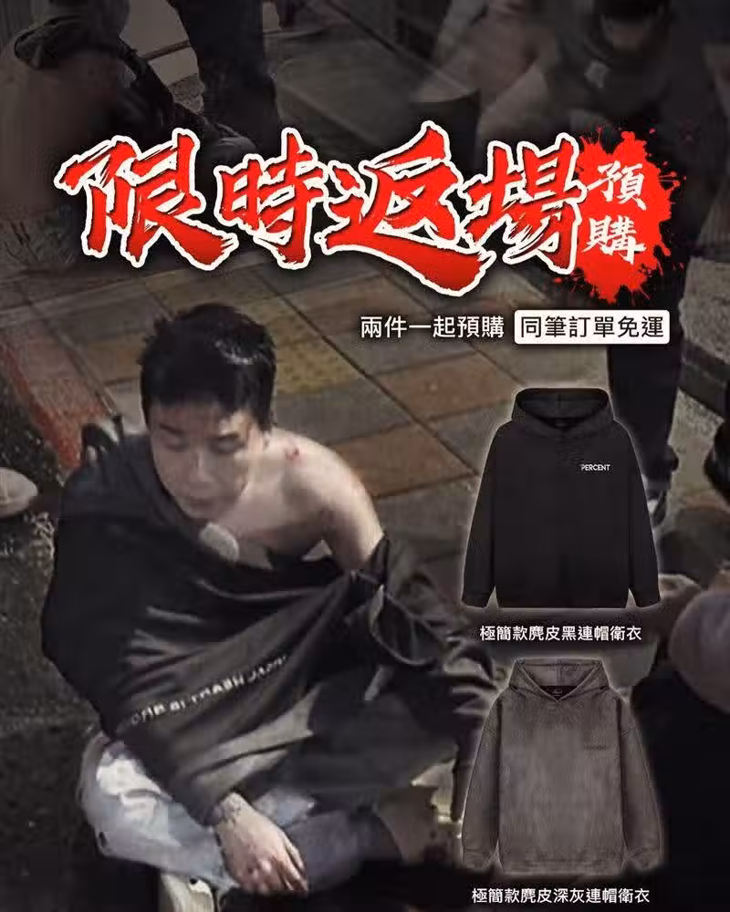被超哥暴打!Toyz推「頭殻有丼」同款濺血帽T 網搶買:什麼錢都可以賺
