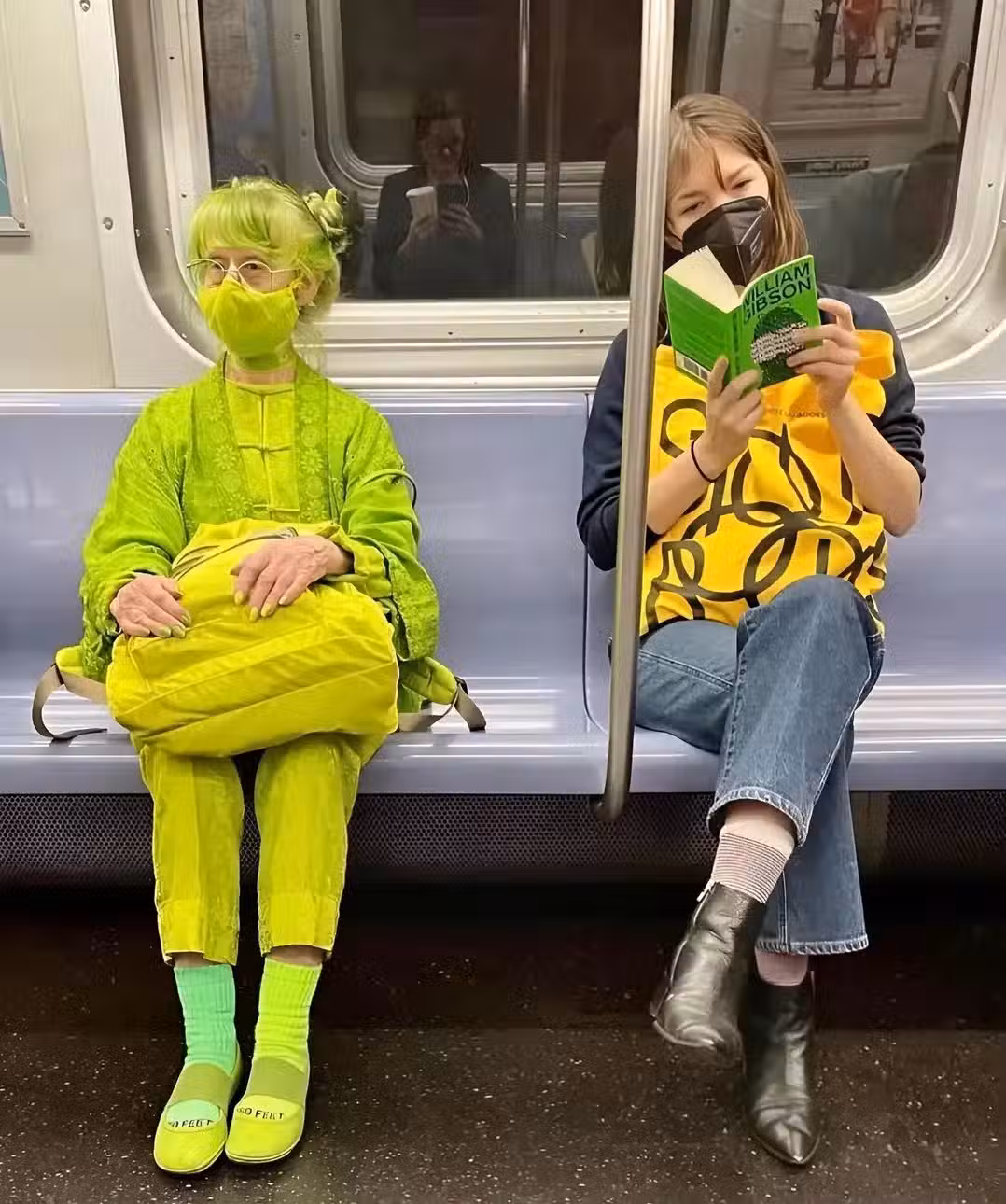 她的每一件衣服雖然都是綠色,但是綠的各有不同,看起來又十分舒服。 她會在自己設計改造的衣服上添加一些獨特的圖案,而經她自己的搭配之後,凸顯出一股 復古的時尚感。 每一套衣服在她身上,都顯現出不拘一格的氛圍,即便全身是綠,但是充滿著個性、生機盎然與樂趣