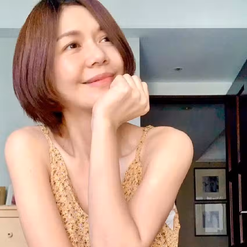 只見她對鏡頭展現甜美微笑,微微低頭的側臉露出完美好膚質,完全看不出來已經有51歲的年紀,