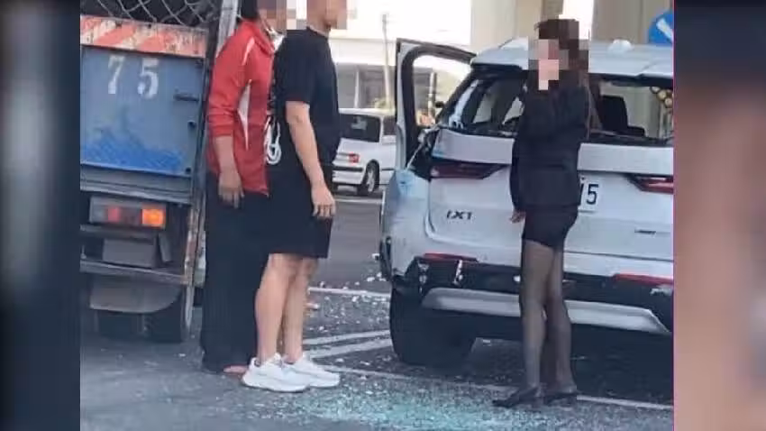 高雄仁武昨天發生一起交通事故,59歲的張姓男駕小貨車行經澄觀路二段與鹽埕巷口時,疑似變換燈號之際,因煞車閃避不及追撞前方試駕的BMW電動休旅車,導致BMW休旅車後方玻璃碎片散落一地。