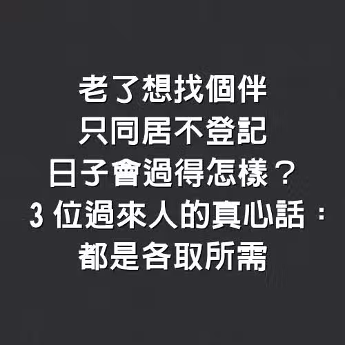 那麼,那些選擇搭夥過日子的老年人日子過得怎麼樣?我們來聽聽3位過來人的真心話。