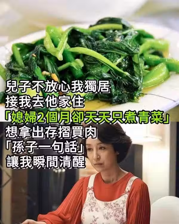 兒子不放心我獨居!接我去他家住「媳婦2個月卻天天只煮青菜」 想拿出存摺買肉「孫子一句話」讓我瞬間清醒~