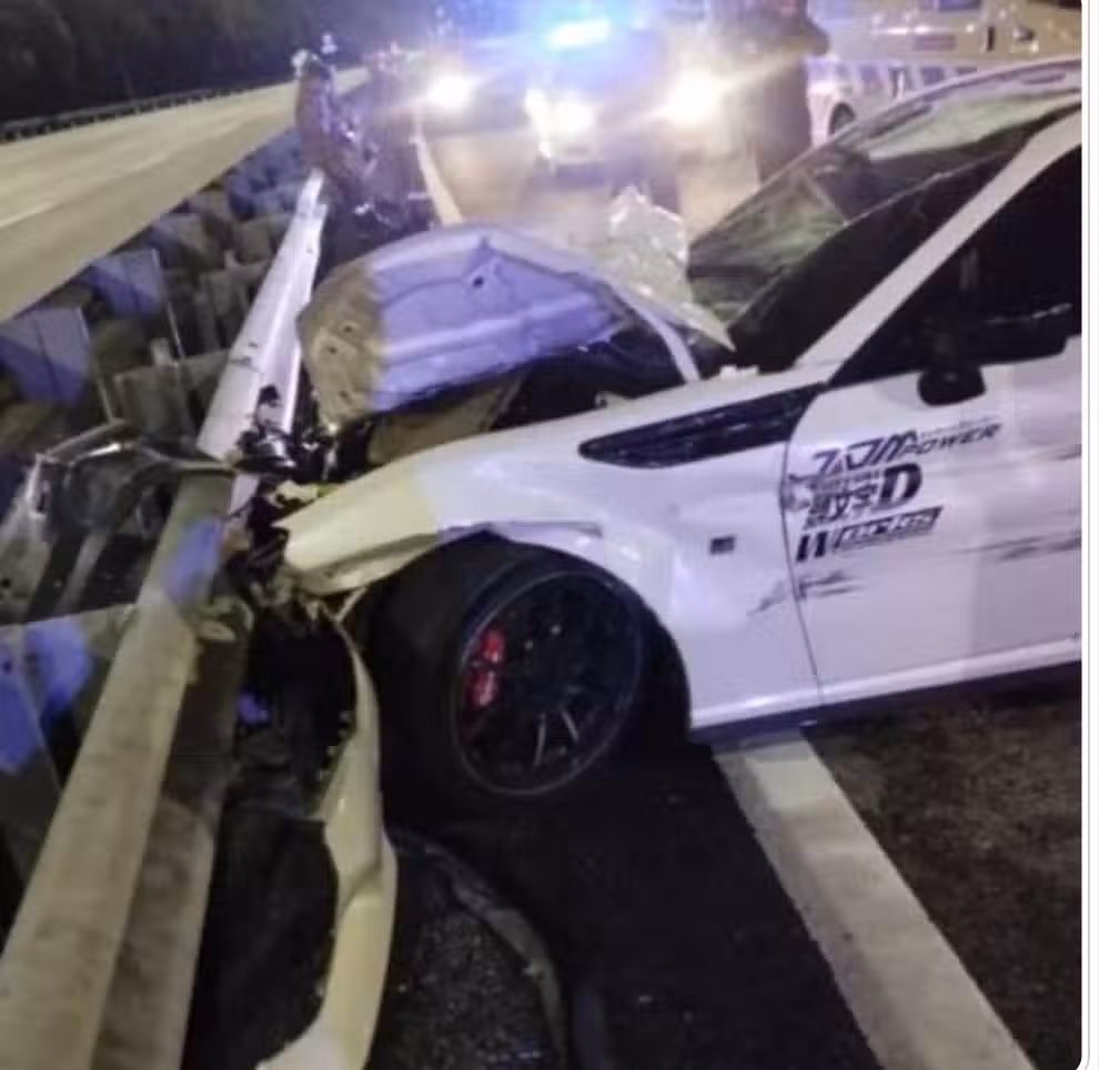根據現場照片,該輛轎車的車身上,也貼有超人氣賽車漫畫「頭文字D」的設計圖案。
