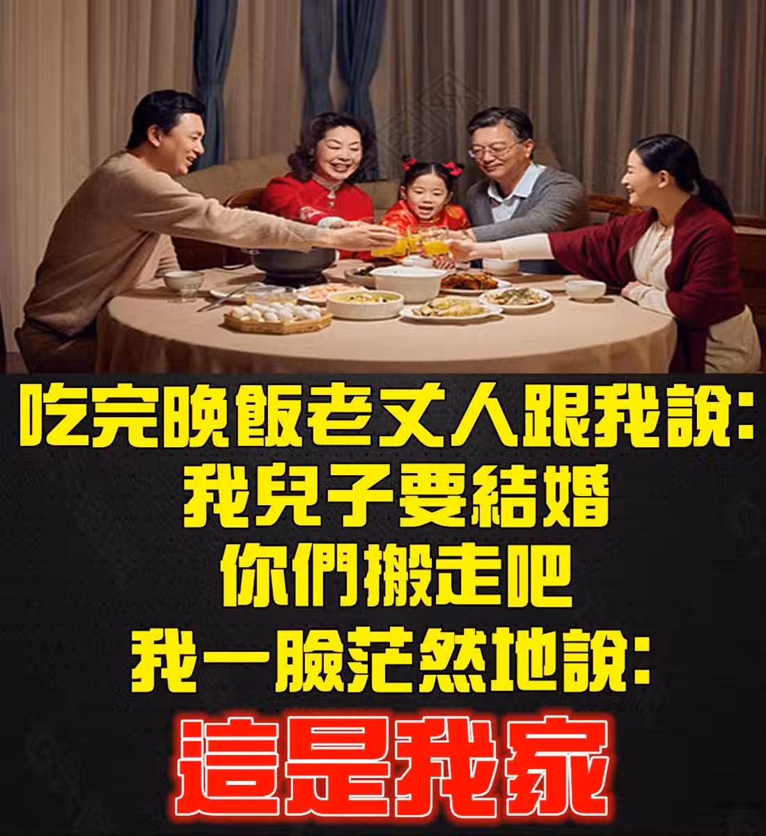 吃完晚飯老丈人跟我說:我兒子要結婚,你們搬走吧。我一臉茫然地說:這是我家~