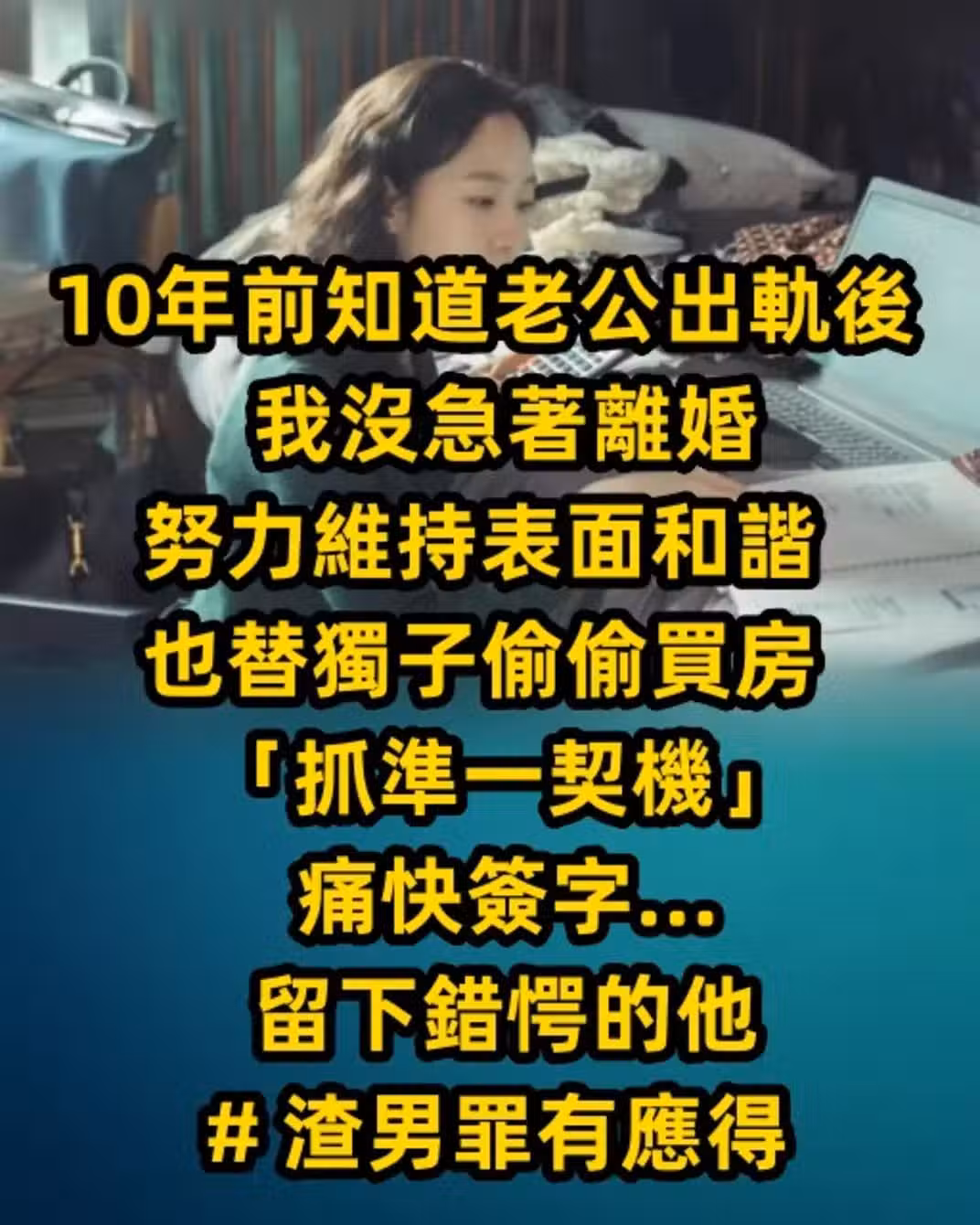 10年前知道老公出軌後,我沒急著離婚,努力維持表面和諧,也替獨子偷偷買房,「抓準一契機」痛快簽字…留下錯愕的他 # 渣男罪有應得