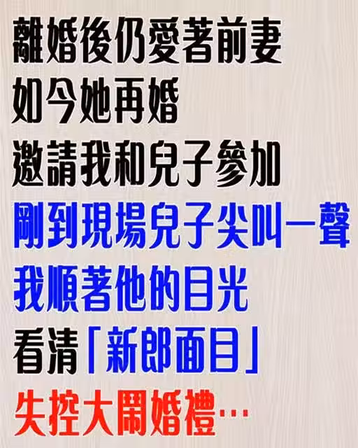 失婚後仍愛著前妻!如今她再婚邀請我和兒子參加,剛到現場「兒子尖叫一聲」,我順著他的目光看清「新郎面目」失控大鬧婚禮!