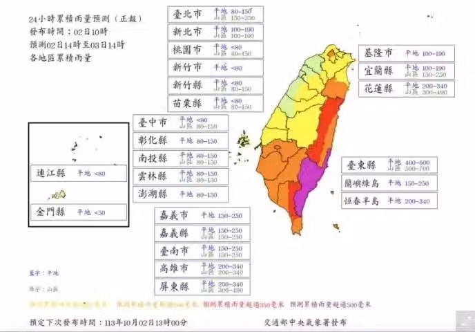 另外氣象專家林得恩也表示,因為颱風走向改變,加上速度幾乎在時速10公里左右,讓明天一直到周六(5日)都可能還是有大雨的狀態,雖然到時候山陀兒可能就在台灣消散,變成熱帶低壓,但是帶來的風雨依然影響台灣,大家不能放鬆警惕。
