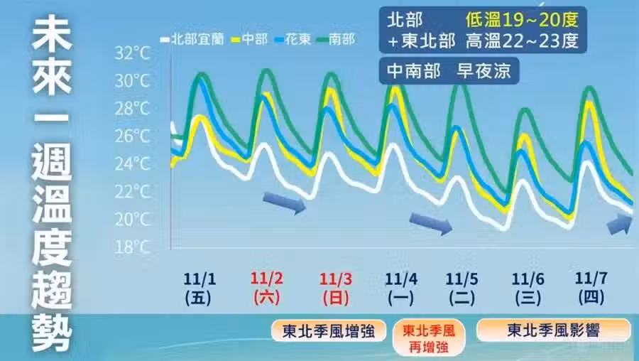 「下周在菲律賓以東的低緯度洋面預期仍可能有擾動發展,並且靠近菲律賓一帶的機會」,吳聖宇在臉書粉專發文分析,目前預報比較分歧,實際情況還要觀察,是否影響台灣都言之過早。今年因為逐漸轉為反聖嬰現象海溫的關係,南海、菲律賓一帶的洋面海溫偏暖,預期11月甚至到12月都還是有可能出現熱帶擾動比較活躍發展的情況。