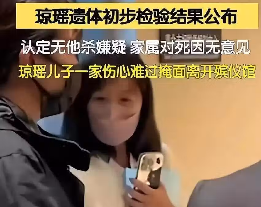 從殯儀館走出來之時,檢視了瓊瑤遺體警方排除他殺後,瓊瑤的親人幾乎已經不穩定,強撐著突破媒體鏡頭的周邊圈,踉踉蹌蹌走回車裡。