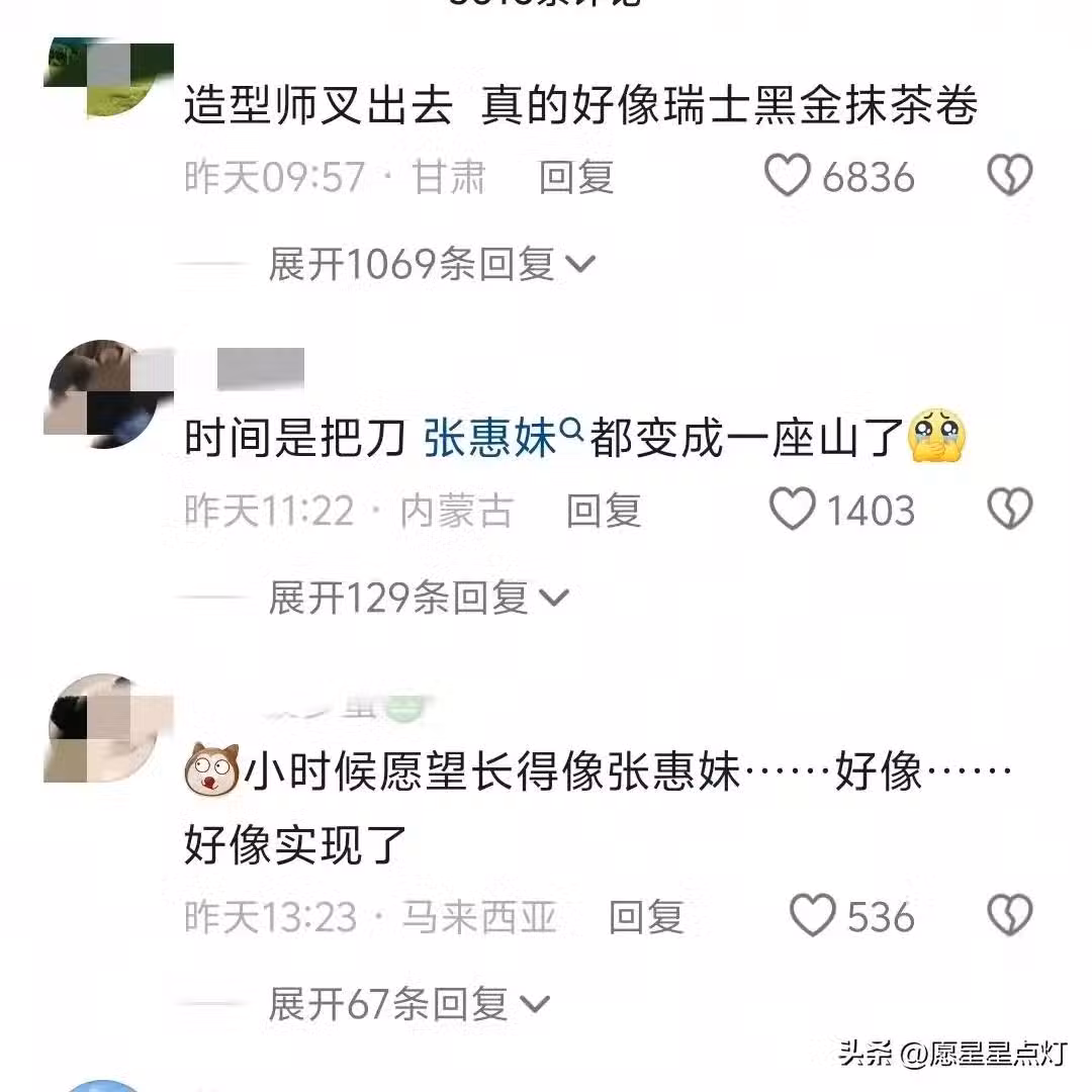 這次也不為過,部分網友紛紛調侃說:「歲月是把殺豬刀,把張惠妹變成了一座山。」,還有的說:「小時候的願望是長得像張惠妹,現在好像實現了。」