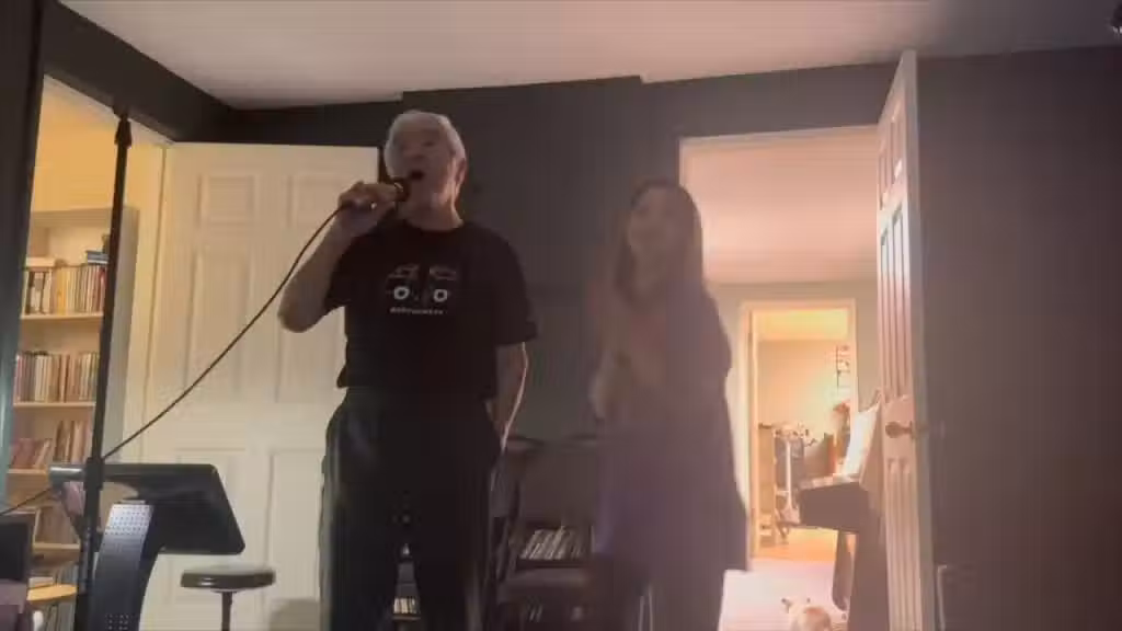 屋內亦擺放了鋼琴及大量家庭照,非常有溫馨感,姜麗文更在視頻中加插與爸爸秦沛在家中唱K的片段,父女們大曬好歌喉。