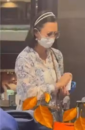 照片中的翁虹,身著一襲優雅的裝扮,白色襯衫上細膩的花卉圖案為她平添了幾分溫婉氣質。搭配著簡約的藍色牛仔褲,既展現了她的休閒隨性,又不失時尚感。黑色手提包恰到好處地襯托出她的沉穩與幹練,而口罩與眼鏡的組合,則在不經意間透露出一絲神秘與低調。整體穿搭簡約而不失格調,完美融合了舒適與時尚。