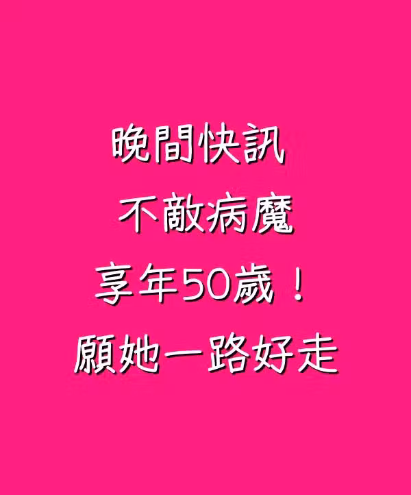 晚間快訊 / 不敵病魔享年50歲! 願她一路好走