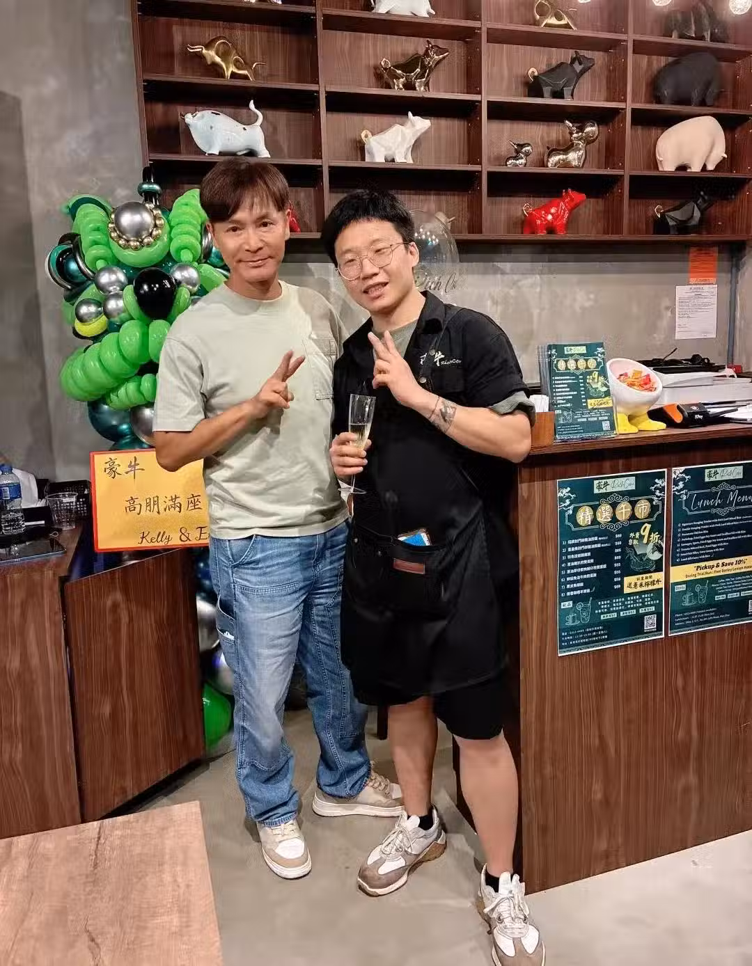 在郭晉安吃飽喝足,準備離開時,老闆請求和他一起拍攝合影,他欣然同意了!