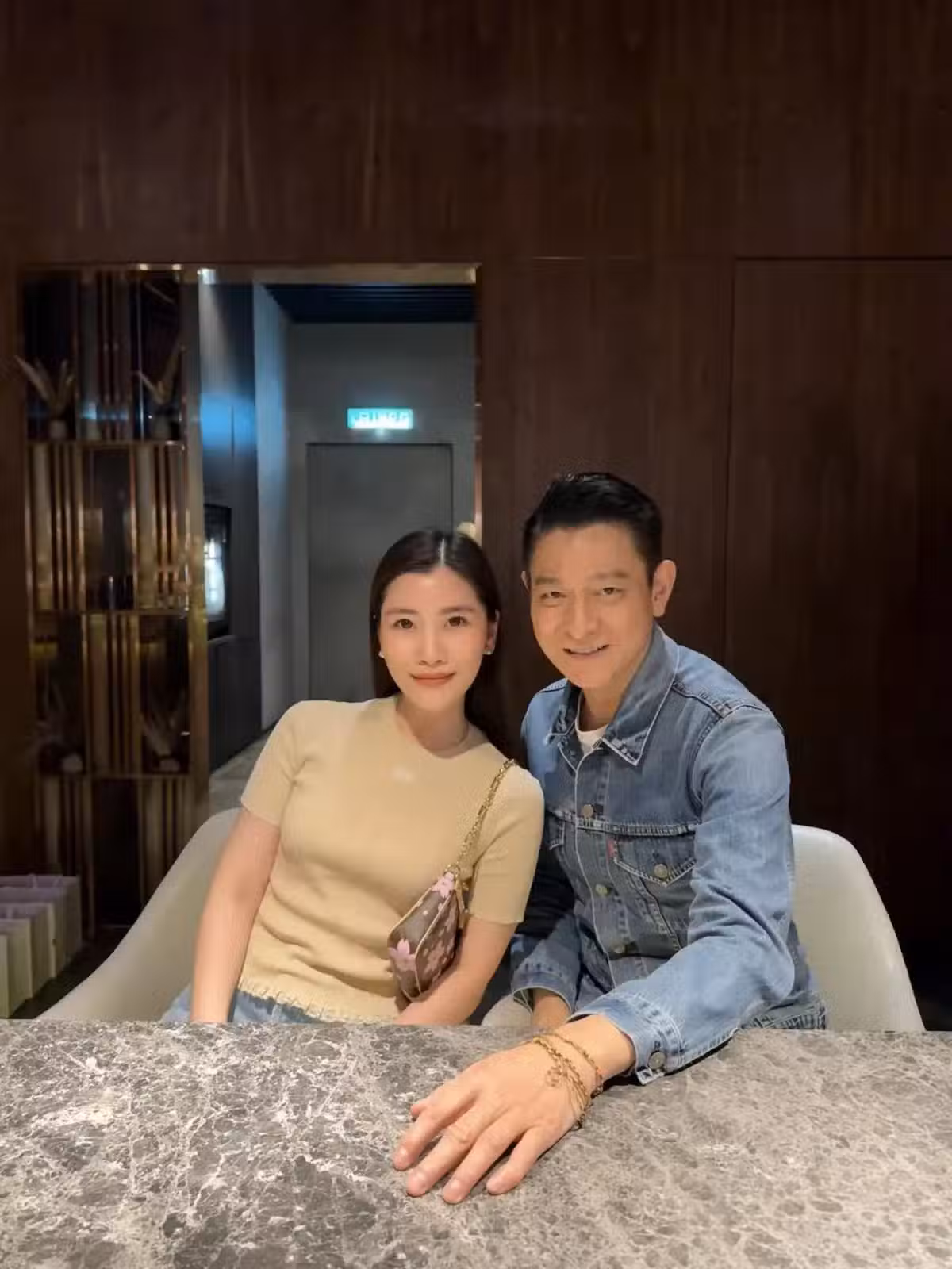 劉德華到馬來西亞,陪朱麗倩回娘家,和小姨子吃西餐,合照好拘謹