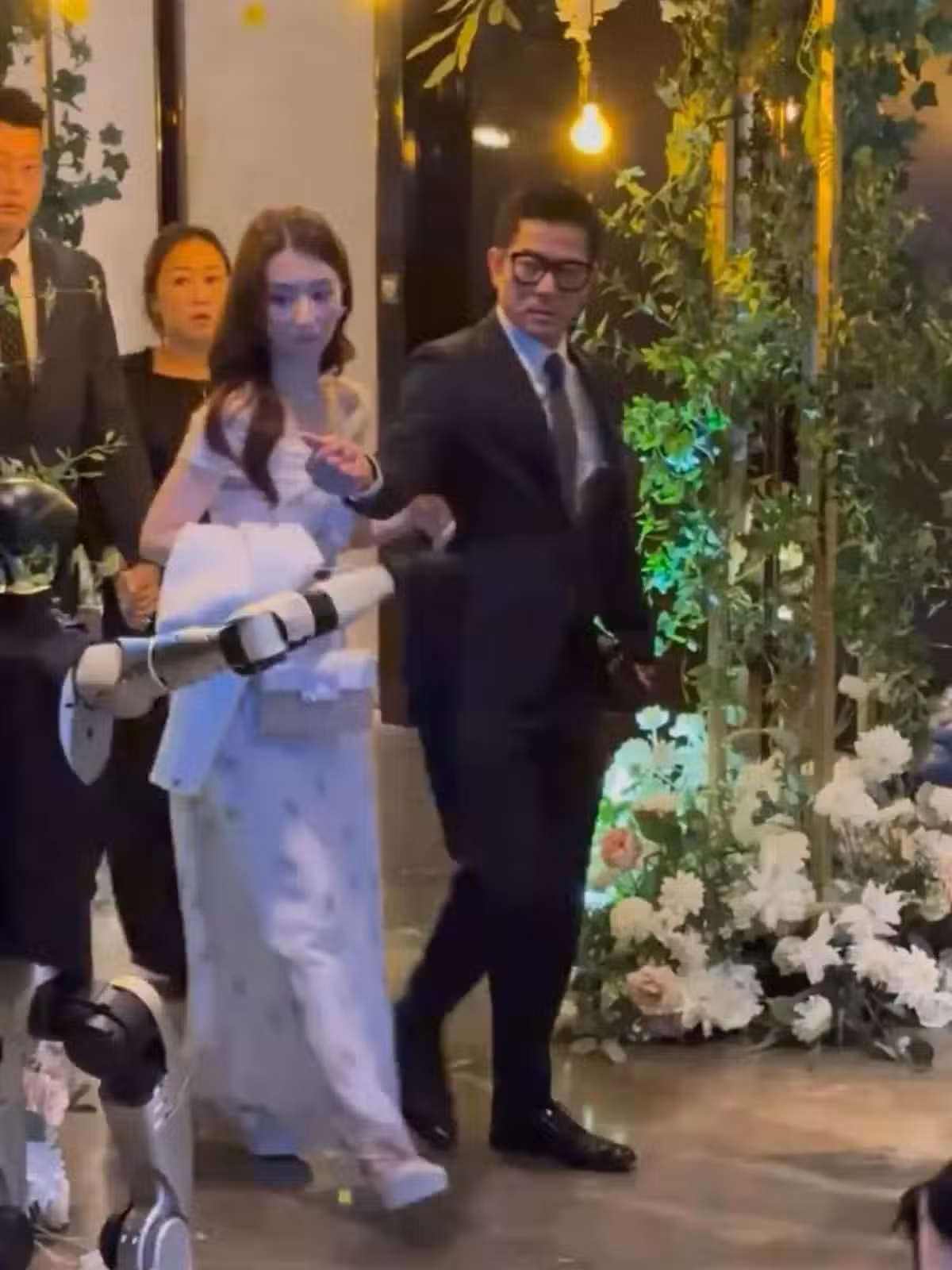 郭富城和方媛兩人顏值都好高,儘管年齡相差22歲,但兩人的顏值是真的很登對,男帥女美超養眼。而且郭富城對方媛是真的很照顧,兩人路過一個機器人旁邊時,郭富城還擔心會碰到方媛,條件反射般抬起手臂讓方媛挽著。