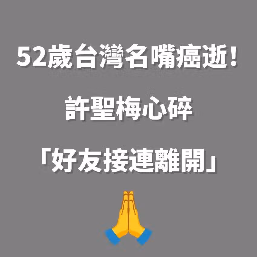 52歲台灣名嘴癌逝!許聖梅心碎「好友接連離開」揭離奇內幕:曾撿骨入夢