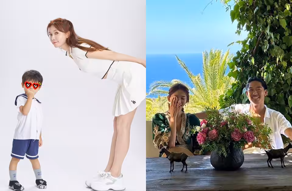 而一旁的AKIRA穿著白色背心、格紋襯衫,頭髮自然紮起,幸福洋溢地拍著兒子跟老婆的互動,嘴角露出微笑,有網友猜一旁的長輩可能是林志玲的婆婆,