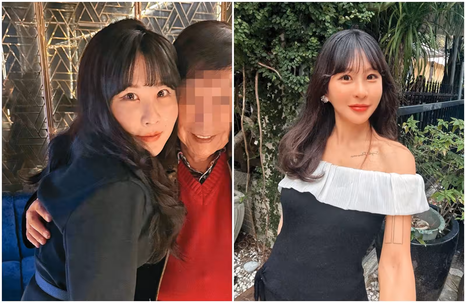 ▲仙塔律師(右圖,翻攝自臉書)和富商(左圖右,讀者提供)的合照流出,富商親昵摟著她的背。