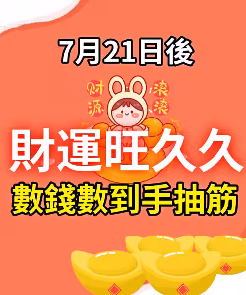 7月21日後財運旺久久,數錢數到手抽筋的生肖!