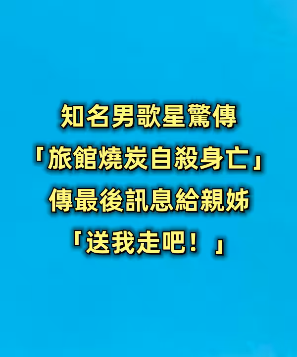 知名男歌星驚傳「旅館燒炭自殺」身亡,虛弱傳最後訊息給親姊「送我走吧!」