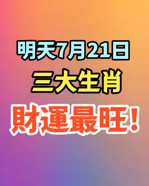 明天7月21日:三大生肖財運最旺!財氣如虹,橫財臨門! 隨著七月進入下旬,財星強勢入宮,宇宙磁場流轉,對三大生肖形成有利格局。 7月21日這一天,屬兔、屬蛇、屬虎的朋友將迎來本月最強財運日之一。 不論是正財、偏財,還是突如其來的好消息,都將在今天集中爆發,令你錢包鼓起,笑容綻放! 讓我們一起來看看這三大生肖,如何在明天財神爺的護持下,一掃陰霾,財運飆升!