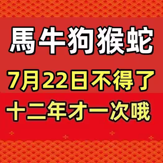 生肖(馬牛狗猴蛇)火了,7月22日不得了,十二年才一次哦!