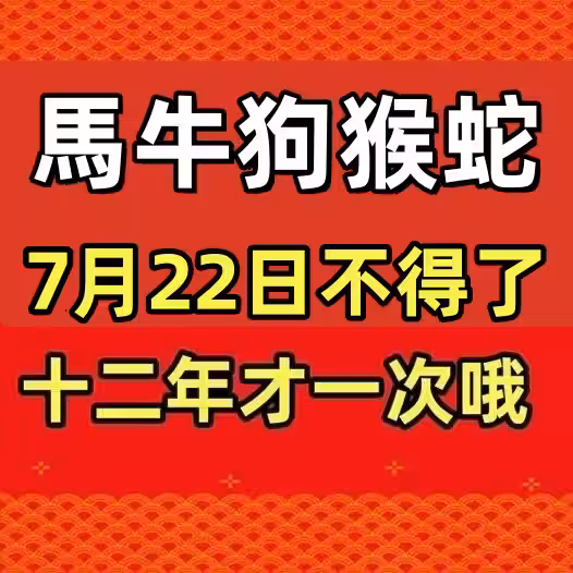 生肖(馬牛狗猴蛇)火了,7月22日不得了,十二年才一次哦