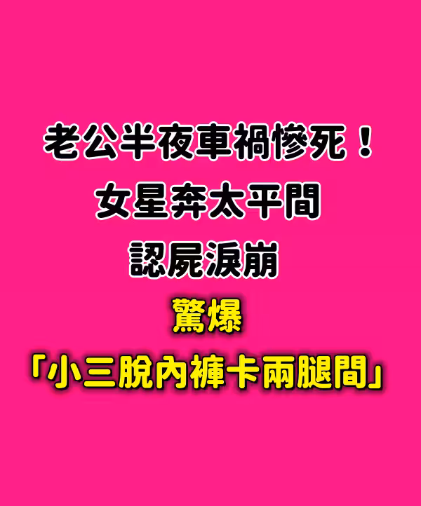 老公半夜車禍慘死!女星奔太平間認屍淚崩 驚爆「小 三褲褲卡兩腿間...」