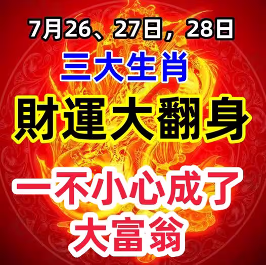 7月26、27日,28日,三大生肖「財運大翻身」一不小心成了大富翁