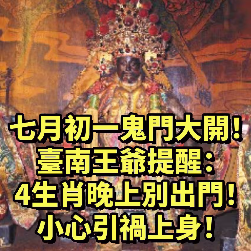 七月初一鬼門大開!台南王爺提醒:四大生肖晚上別出門,小心引禍上身!