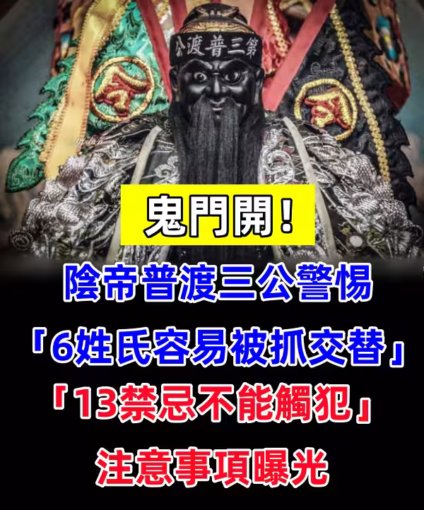 鬼門開!陰帝普渡三公警惕「6姓氏容易被抓交替」「13禁忌不能觸犯」注意事項曝光