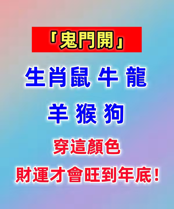 農曆七月初一「鬼門開」,對不少人來說,這可是個特別敏感的日子!不過小編要提醒你,對於生肖 鼠、牛、龍、羊、猴、狗 的朋友,如果穿對顏色,財運可是會一路旺到年底,絕對不能錯過!