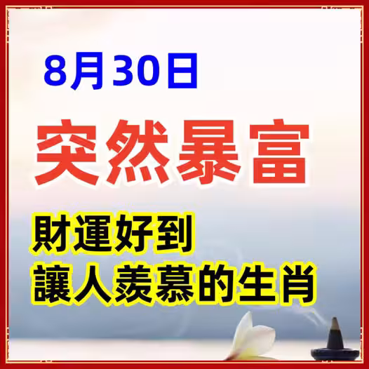 8月30日突然暴富,財運好到讓人羨慕的生肖!