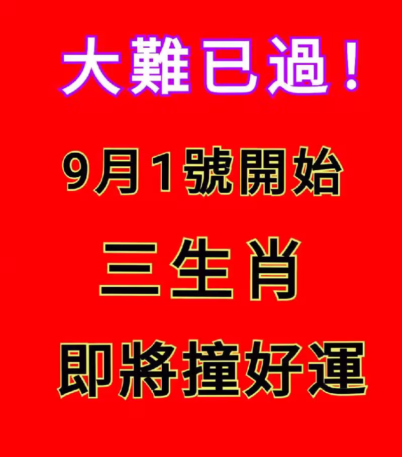 大難已過! 9月1號開始 三生肖 即將撞好運