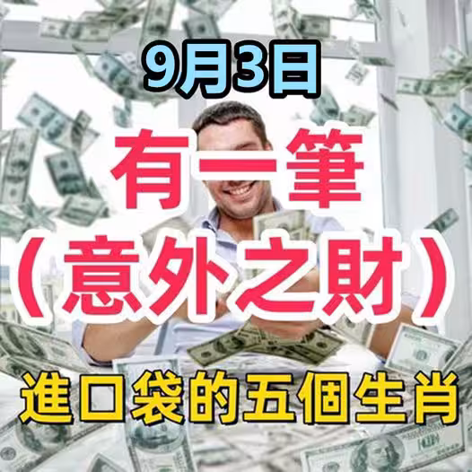 9月3日有一筆意外之財進口袋,恭喜五個生肖鈔票滾滾來