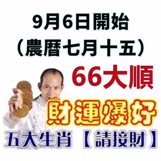 9月6日(農暦七月十五)開始財運爆好,五大生肖請接財!